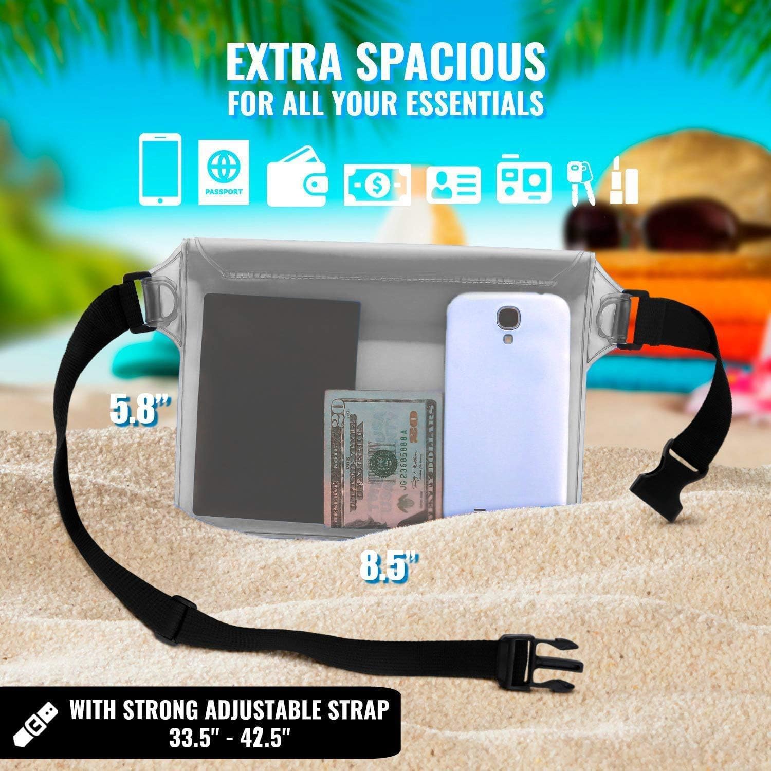 AiRunTech Waterproof Pouch with Waist Strap (2 Pack) | Beach Accessories Best Way to Keep Your Phone and Valuables Safe and Dry | Perfect for Boating Swimming Snorkeling Kayaking Beach Pool Water Park