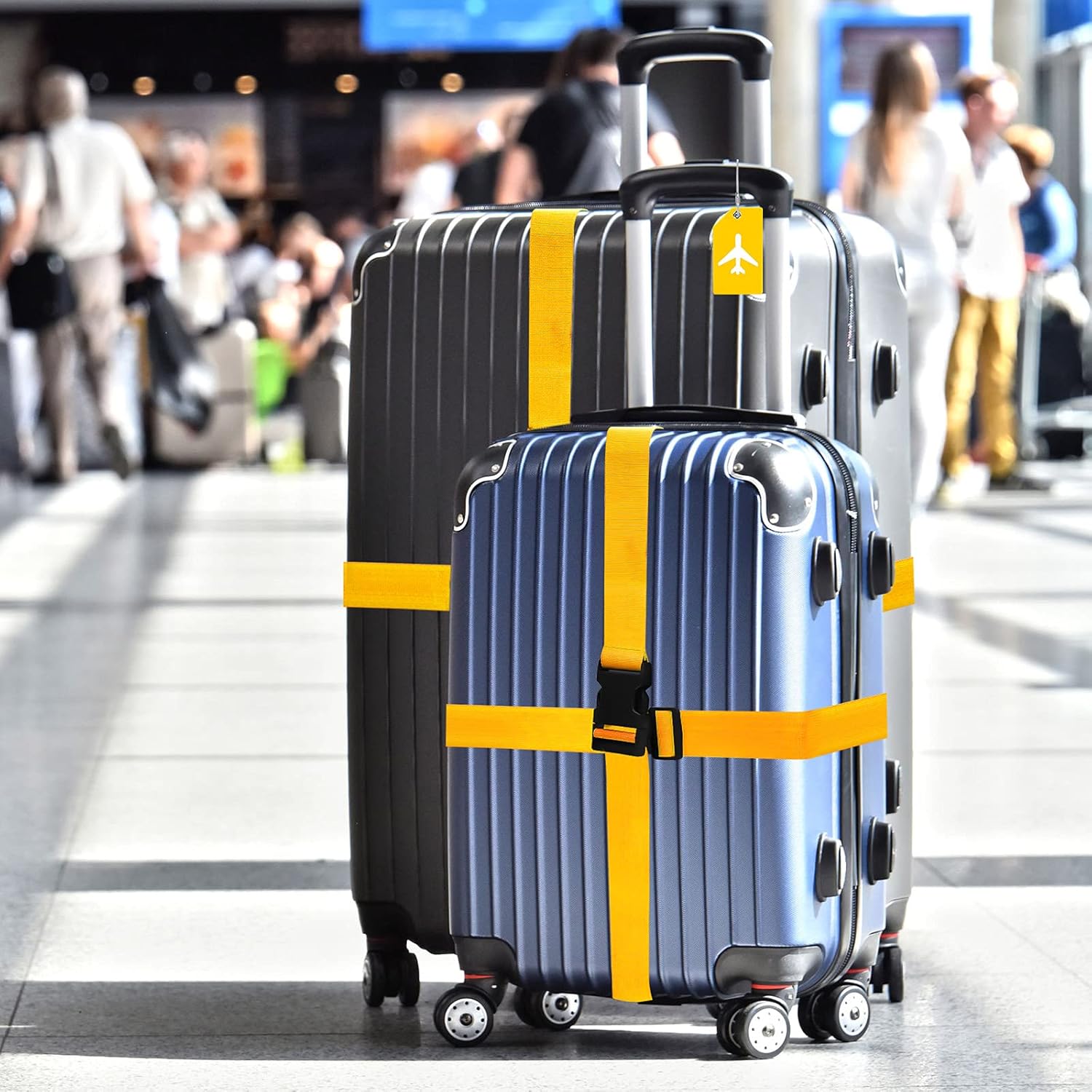 Weewooday 8 Pcs Luggage Straps Suitcase Tags Set for TSA Approved, 4 Travel Adjustable Suitcase Belt, 4 Silicone Luggage Tags with Name ID Card Travel Accessories(Yellow,Airplane)